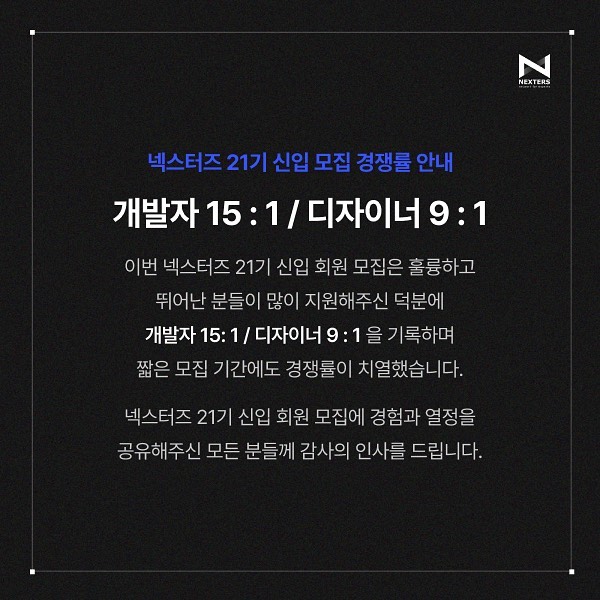그러던 와중 지인을 통해 넥스터즈를 알게 되었고, 다음 기수 모집을 하면 꼭 지원해봐야겠다고 생각했다.