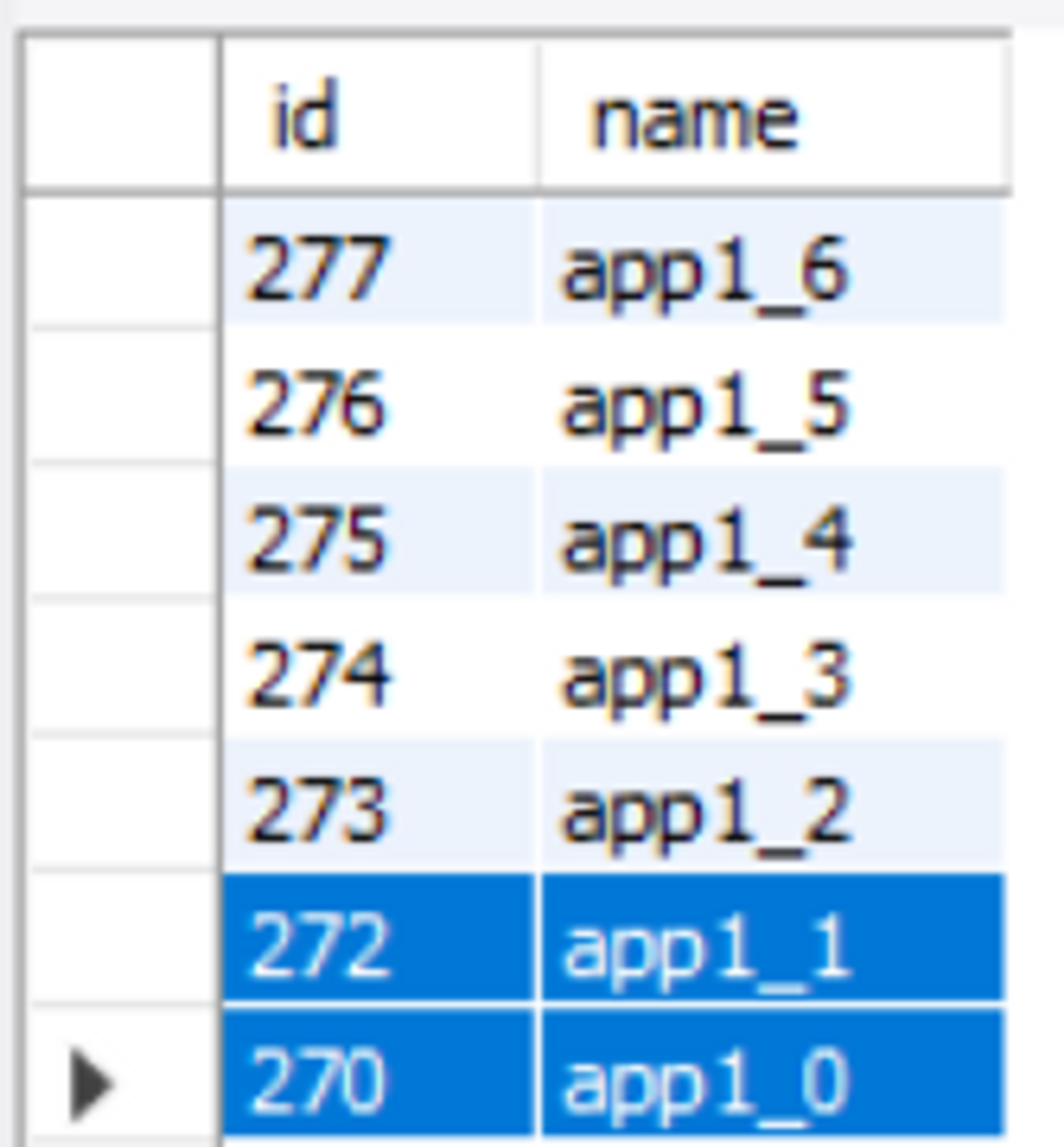 위 테스트와 동일하게, 1번 앱부터 2번 앱 순으로 PK를 순차적으로 채번 했습니다.