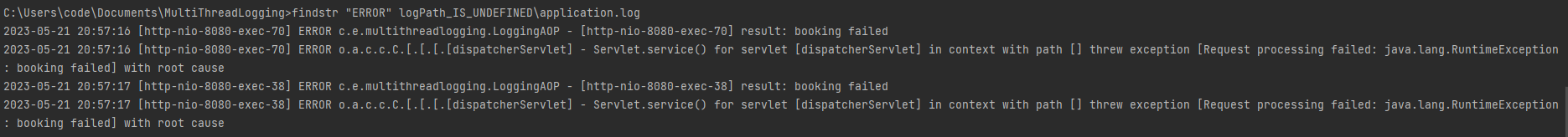 @AfterThrowing(pointcut = "execution(* com.example.multithreadlogging.*Controller.*(..))", throwing = "exception")