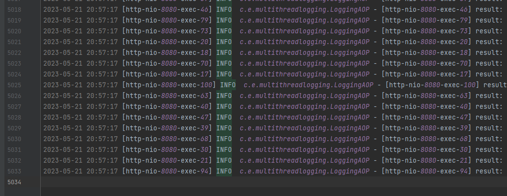 실제 환경에서는 복잡한 비즈니스 로직으로 인해 더 다양한 로그가 기록되고, 분산 환경인 경우 별도 설정이 없다면 스레드 이름까지 겹치게 됩니다.