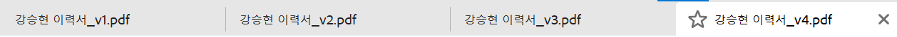 저는 이력서 스터디 전의 이력서(v0)부터 피드백을 통해 점점 바뀌어가는 이력서들 v4까지로 각각 버저닝을 했습니다.