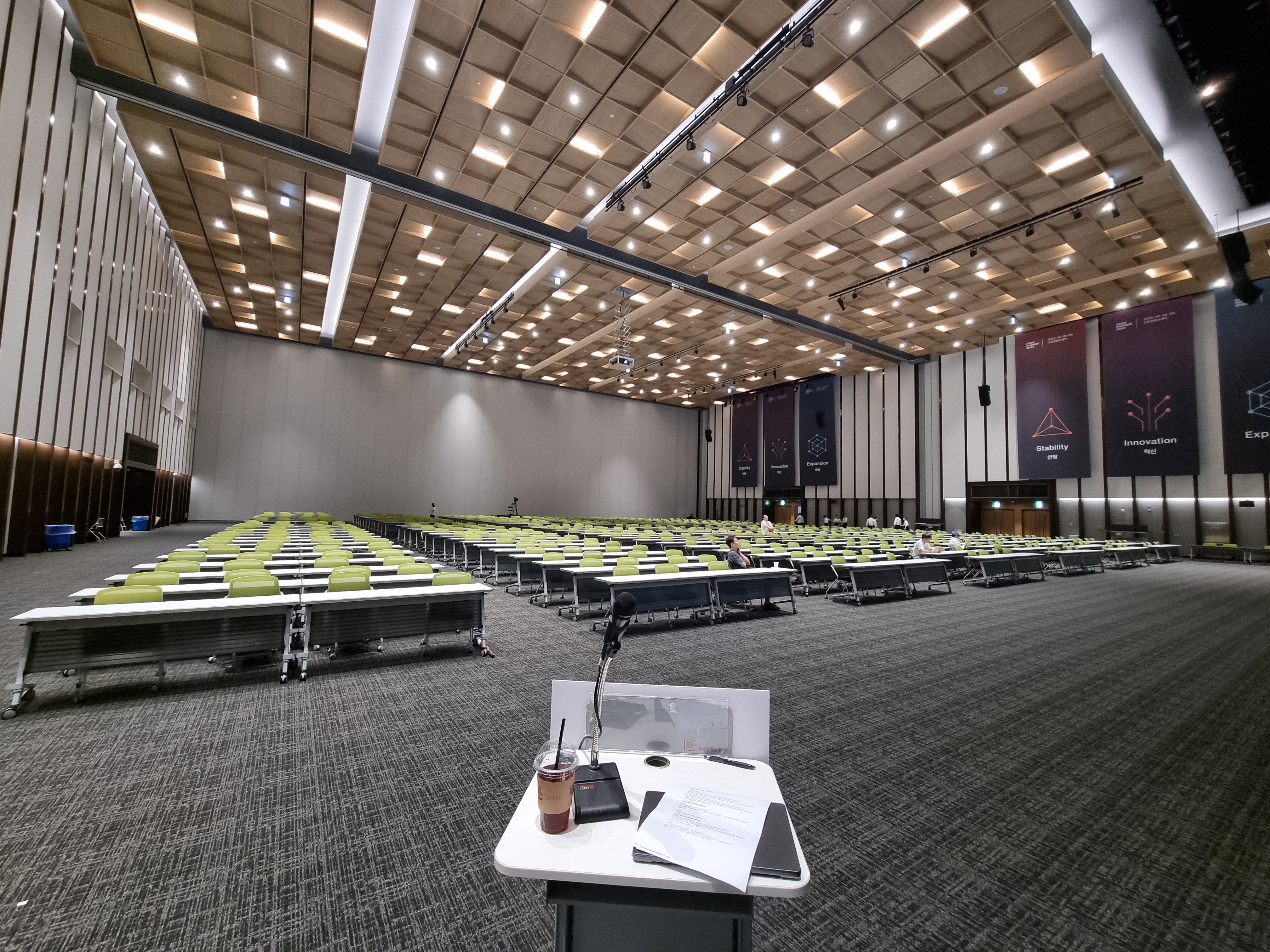 키노트, 점심식사, 페차쿠차, 외부강연은 위 단상이 있는 홀에서 발표를 진행한다.