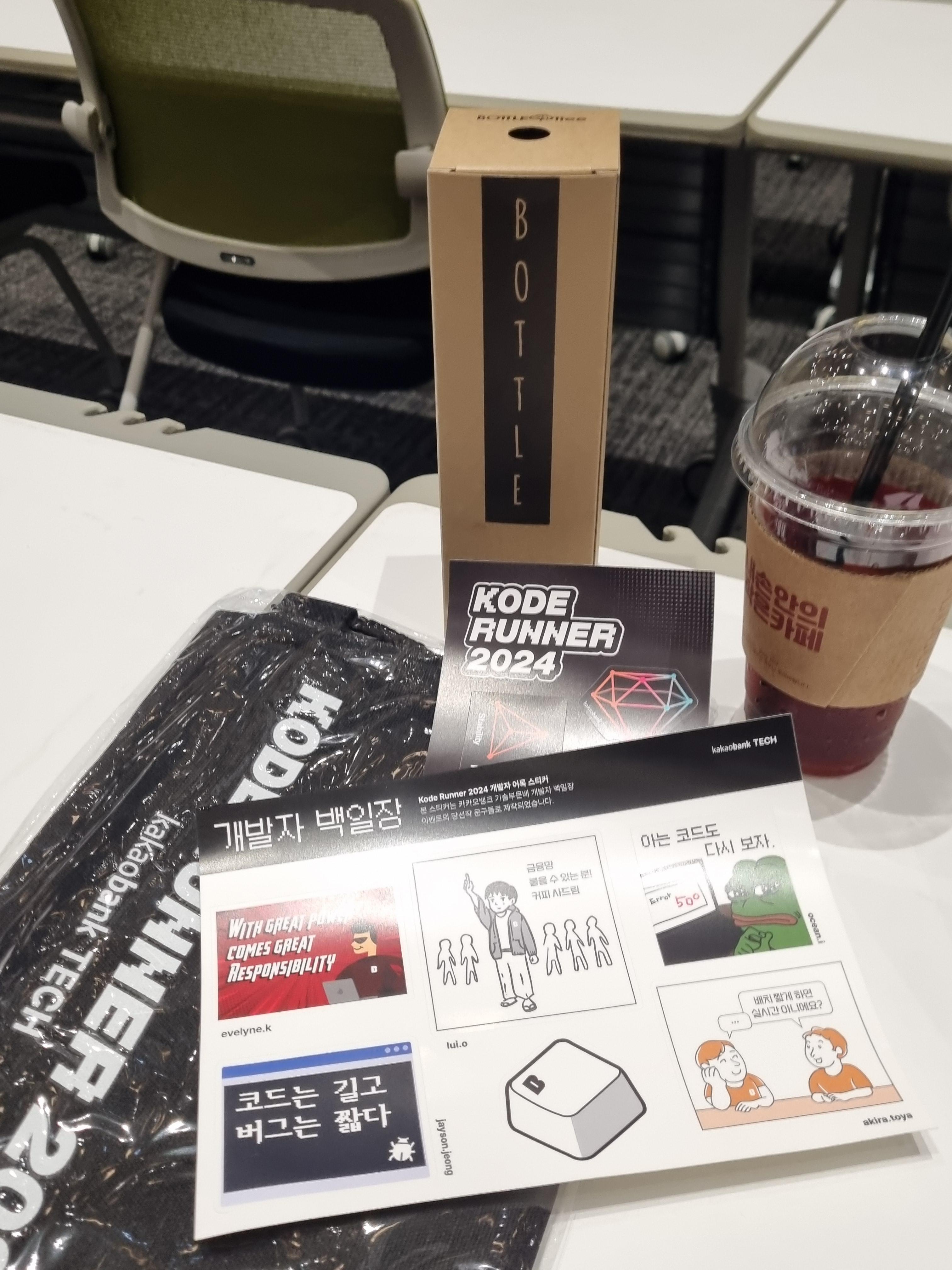 이번 코드러너 2024에서도 개발자 밈으로 스티커들이 만들어졌고 텀블러, 가방 등이 제공되었다.