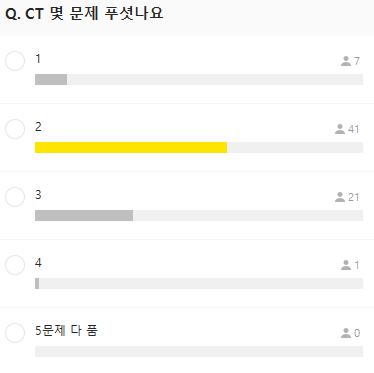 정말 이 질문을 많이 하시더라고요.. 이게 얼마나 도움이 되실진 모르겠지만 CT 1문제로 합격하신 분도 계세요...