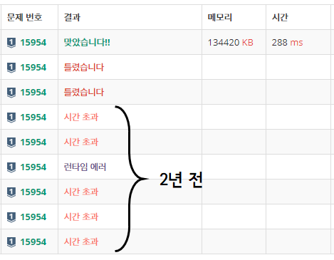 2년 전의 나.. 소스코드를 봤더니 문제 이해도 제대로 못하고 무작정 제출만 했던 것 같습니다. ㅠㅠ