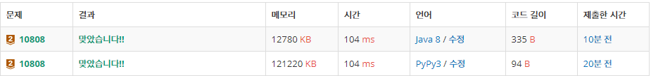 - python에서는 3번째 코드라인 String에 Char로 하나씩 접근이 가능하지만, java에서는 String.charAt(index)로 접근했습니다.