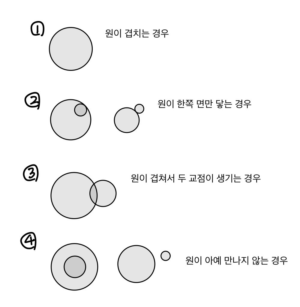 4. 원이 아예 겹치지 않는 경우 (출력값 0)