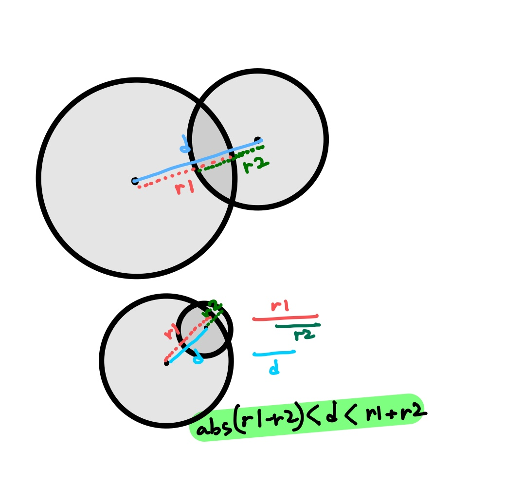 else if(Math.abs(r1-r2)<d && d<r1+r2)
