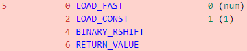Python3에서는 BINARY_TRUE_DIVIDE와 BINARY_RSHIFT만 보였고 doc을 찾아봐도 자세한 정보는 알 수 없었으나