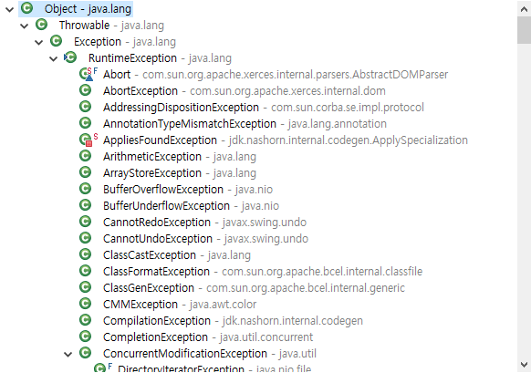 Exception에는 정~말 많은 하위 클래스가 존재합니다.