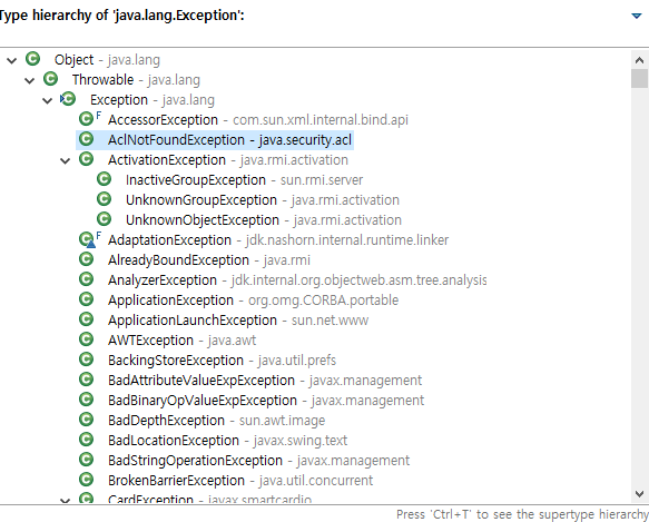 Exception에는 정~말 많은 하위 클래스가 존재합니다.
