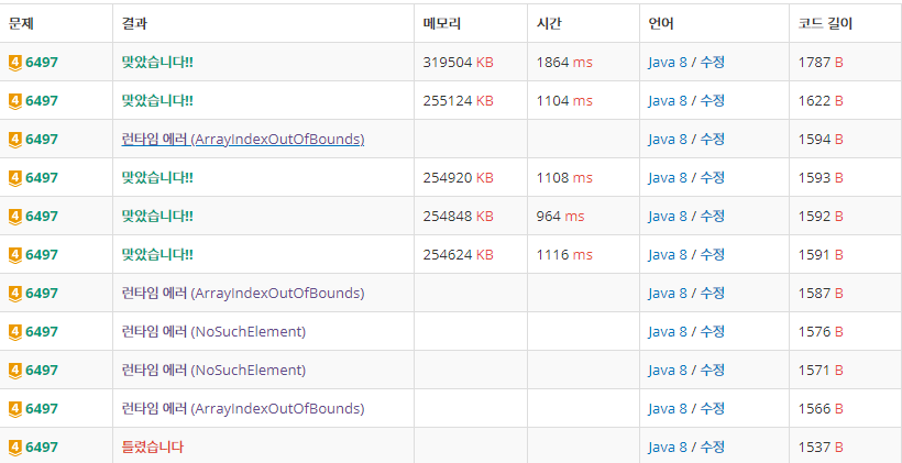 결국 이 문제점을 뒤늦게 이해하고 코드 수정을 하여 AC를 받았습니다.