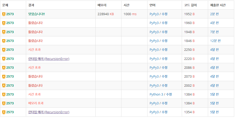 5개월 전 당시엔 이를 DFS로 풀다가 놓쳤던 것 같네요