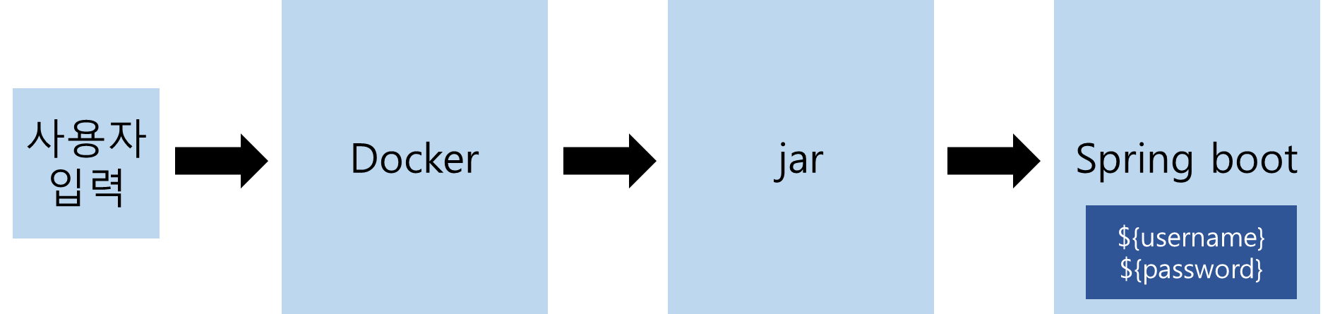 그 사이에 Docker로 값을 전달하고 Docker는 Dockerfile을 통해 jar로 값을 전달하고 jar는 Spring boot로 값을 전달하는 과정을 거치게 됩니다.